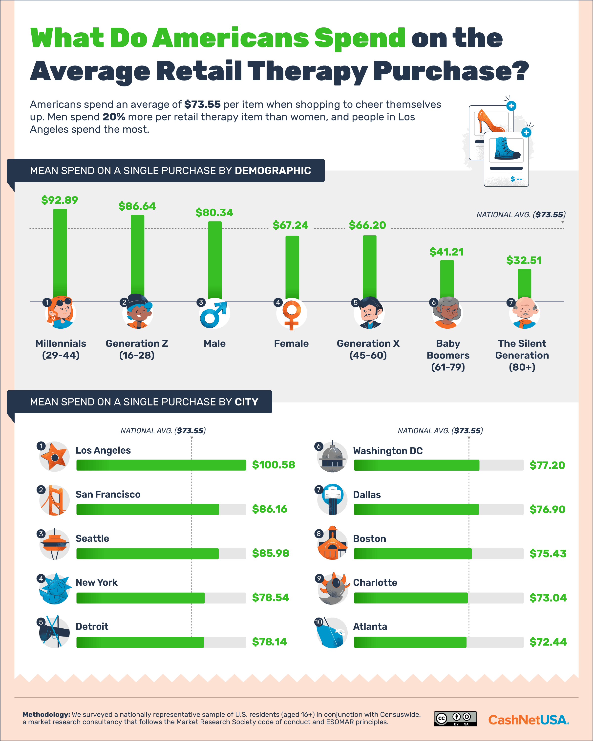 Millennials, men and Los Angeles residents make the most retail therapy buys.